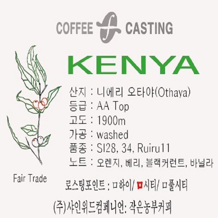 • 슬로우 드라이(Slow dry), 워시드 프로세스(Washed Process) 방식으로 고품질의 Kenya AA 커피를 생산합니다.